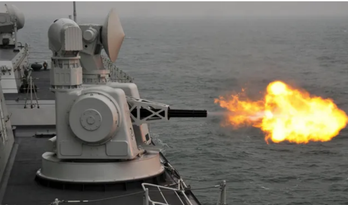 近程对空防御第三批次开始换装了2座1130型近防炮系统,拥有“万发炮”的美誉,能拦截3马赫掠海来袭的超音速反舰导弹,用来取代前两个批次054A型护卫舰的2座730型近防炮。
